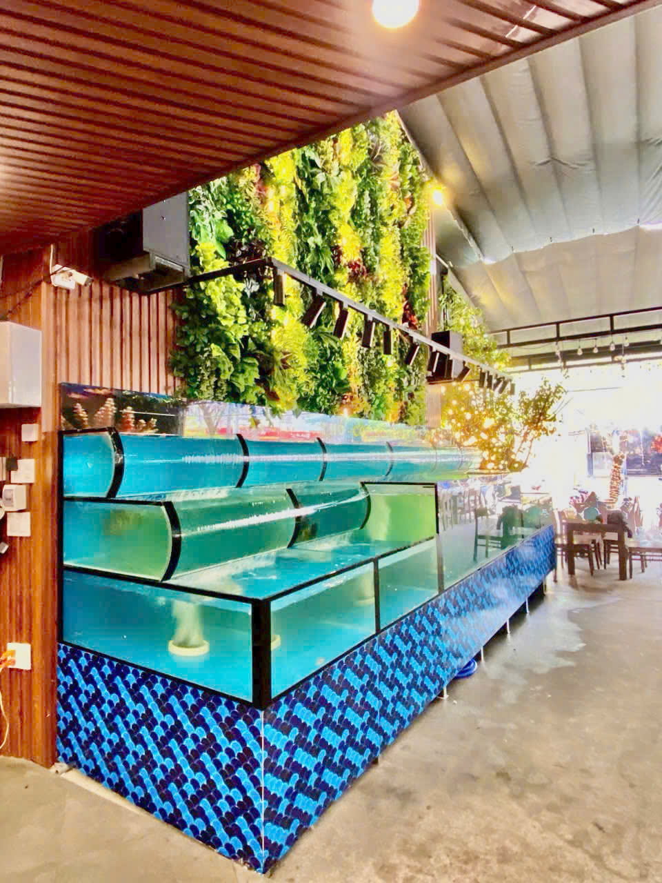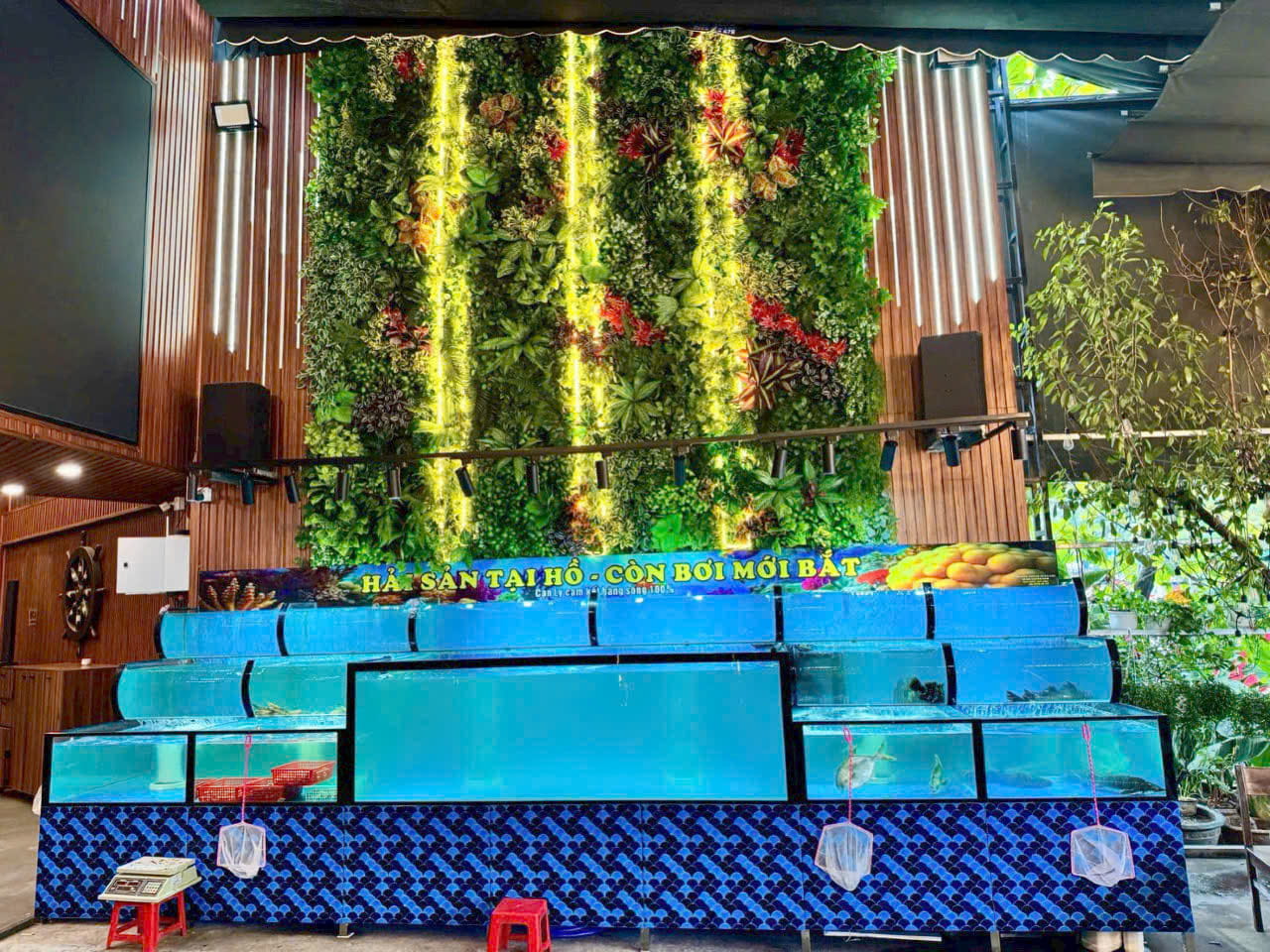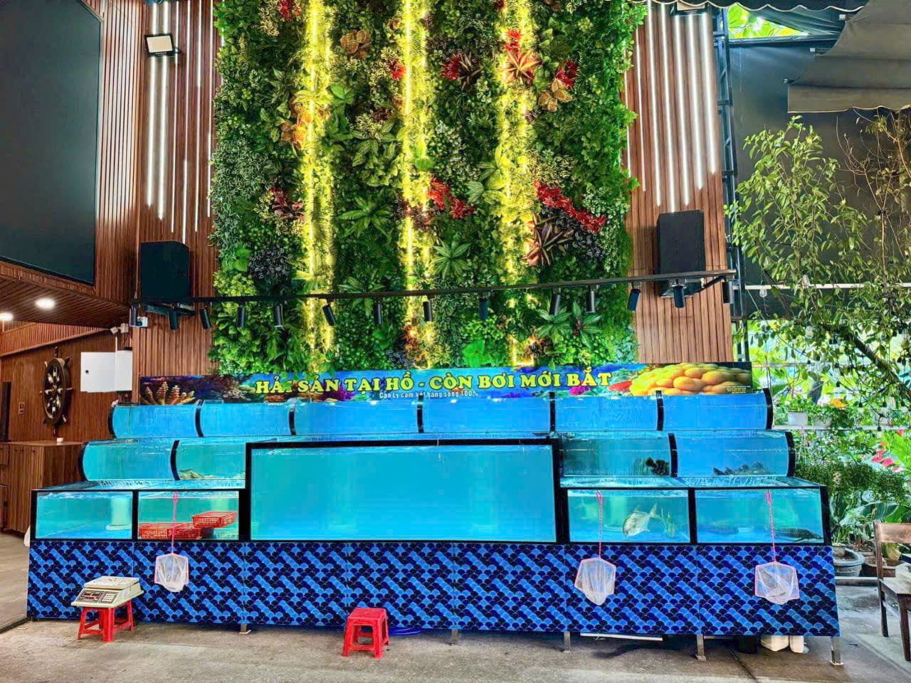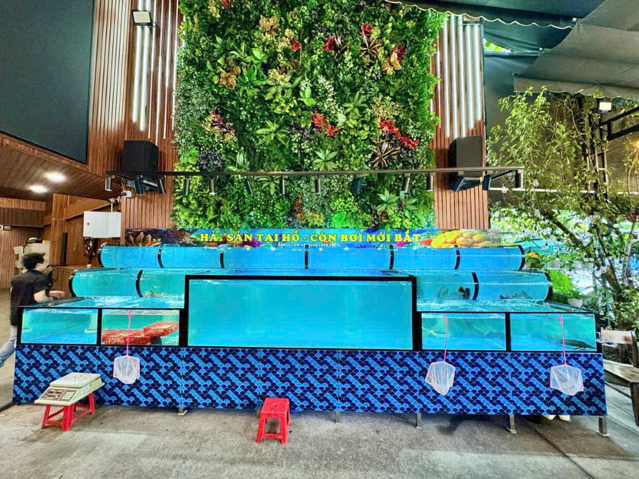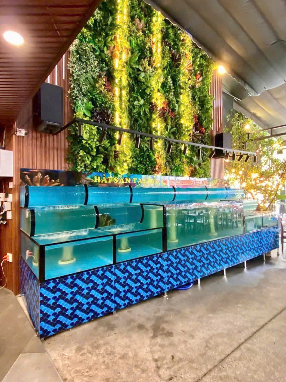 Thi công hồ hải sản nhà hàng Cạn Ly tại Quận 10. Dự án bảo hành 12 tháng.